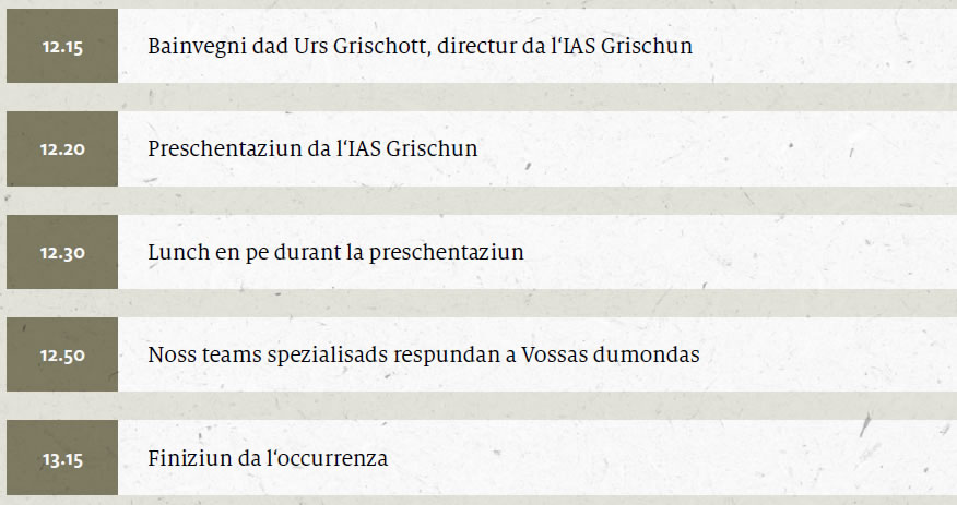 mardi, ils 11 da favrer 2025, da las 12.15 fin las 13.15